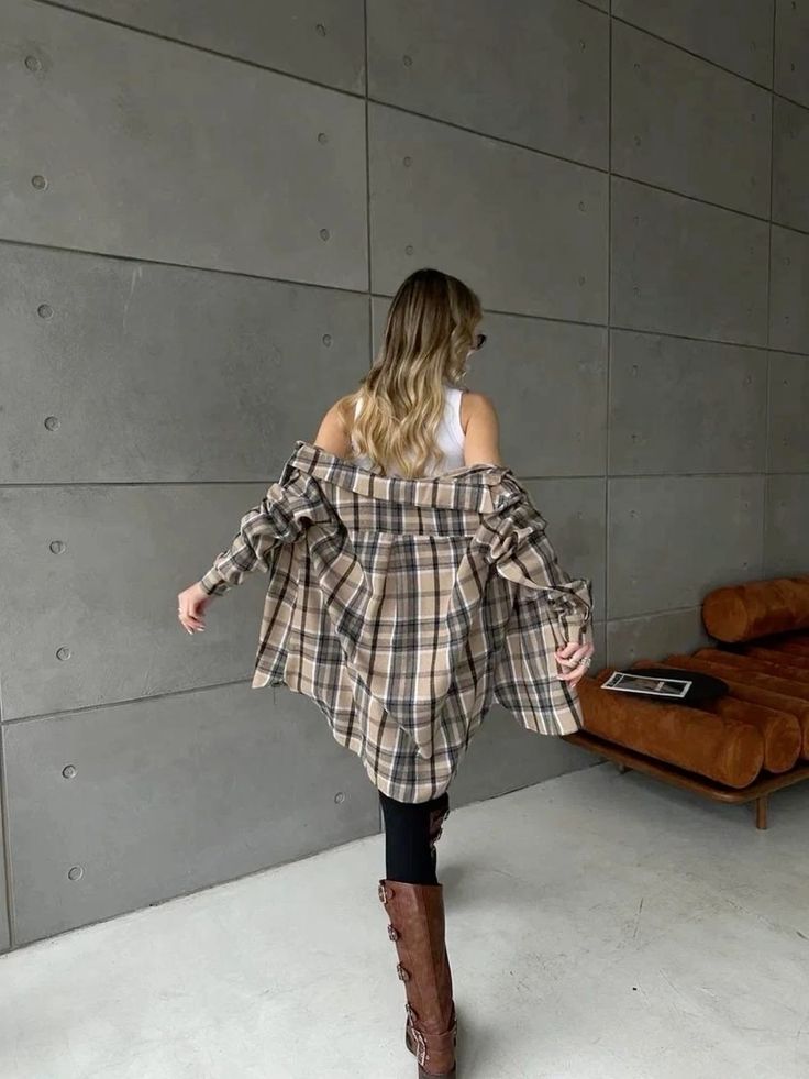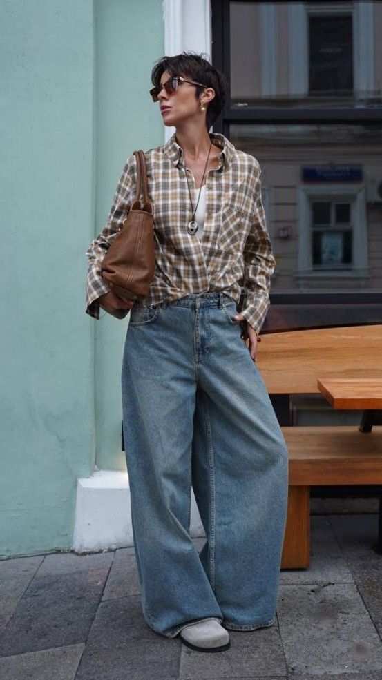 Ключевой образ: Клетчатая рубашка + юбка или брюки в контрастную клетку + однотонные аксессуары.