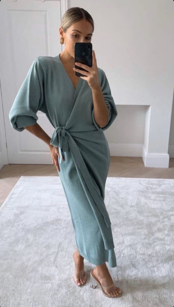 Идеальная длина для визуального удлинения ног — чуть выше колена или по центру колена . Такая длина не «режет» фигуру в самом широком месте, а задает правильную вертикаль. Обратите внимание на платья с V-образным вырезом. Эта простая деталь не только делает шею лебединой, но и вытягивает весь силуэт целиком